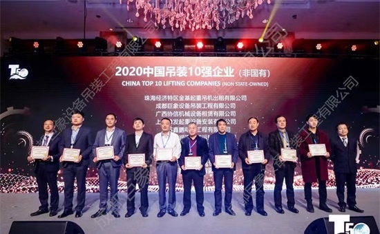 被中國吊裝協(xié)會授予成都巨象吊裝公司(民營)全國十強